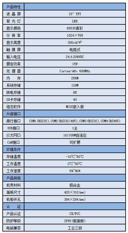 TPC1561Hi,是一套以先进的Cortex-A8 CPU为核心(主频600MHz)的高性能嵌入式一体化触摸屏。该产品设计采用了15英寸高亮度TFT液晶显示屏(分辨率1024×768),四线电阻式触摸屏(分辨率4096×4096),以及具有良好的电磁屏蔽性,美观坚固的铝合金结构。同时还预装了MCGS嵌入式组态软件(运行版),具备强大的图像显示和数据处理功能